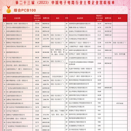 2023年中國電子電路行業(yè)主要企業(yè)營收榜單顯示,鵬鼎控股(深圳)營收最高,達(dá)320.66億元。其他企業(yè)如蘇州東山精密制造...